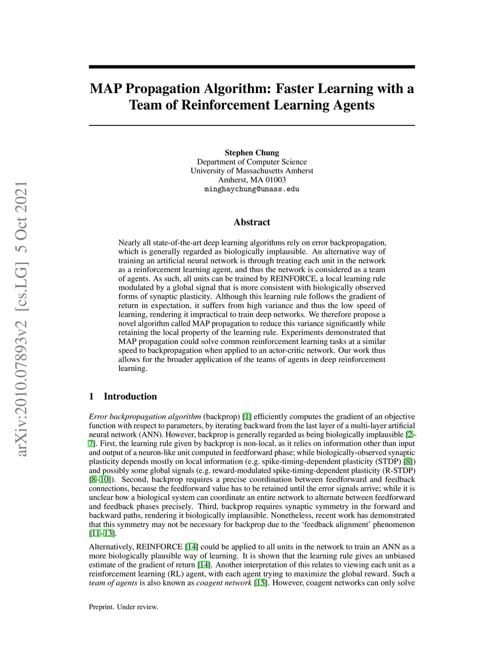 MAP Propagation Algorithm: Faster Learning with a Team of Reinforcement