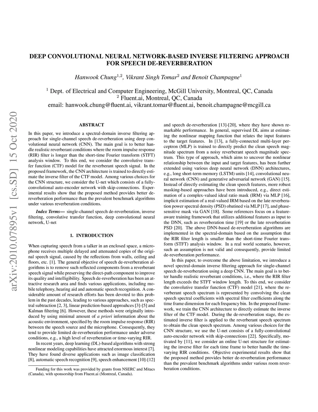 Speech De-reverberation