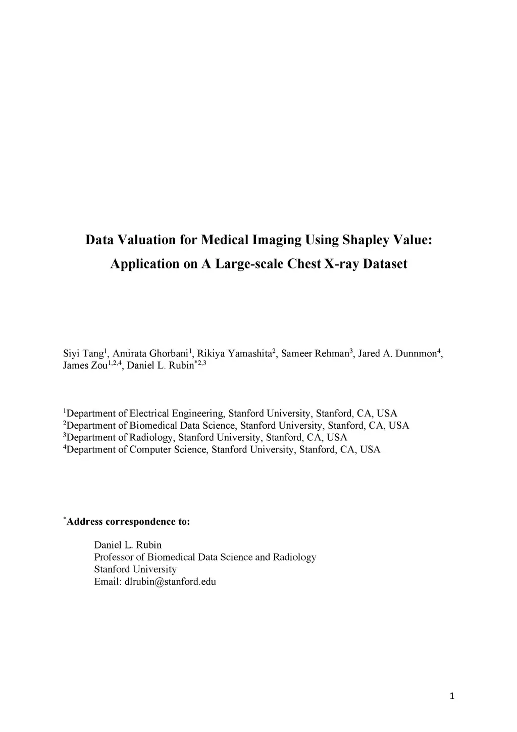 Data Valuation for Medical Imaging Using Shapley Value: Application on A