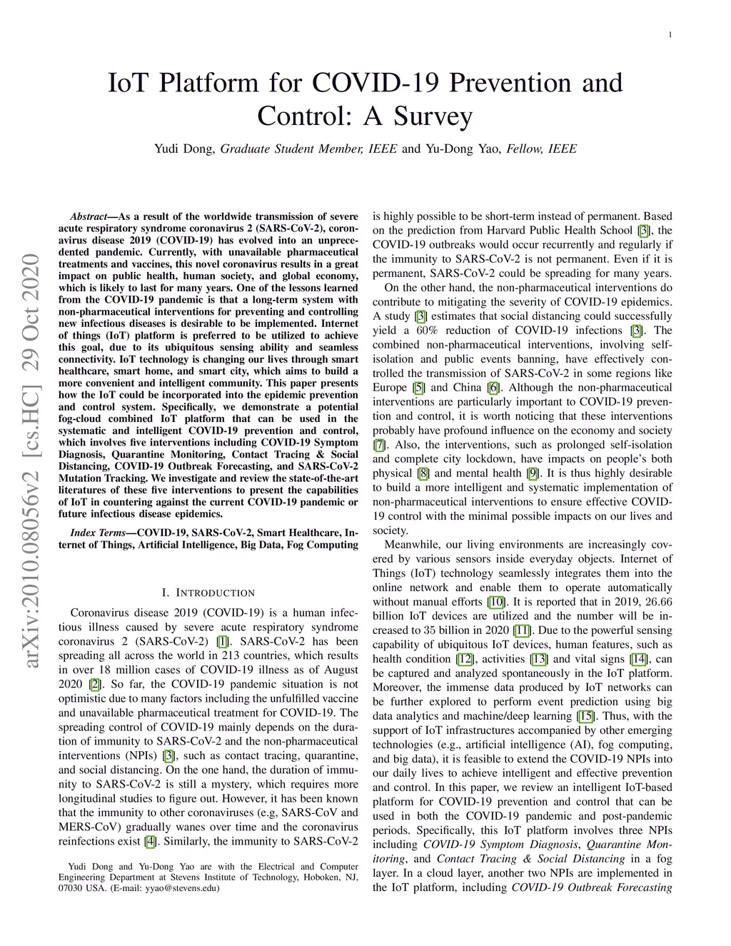 IoT Platform for COVID-19 Prevention and Control: A Survey