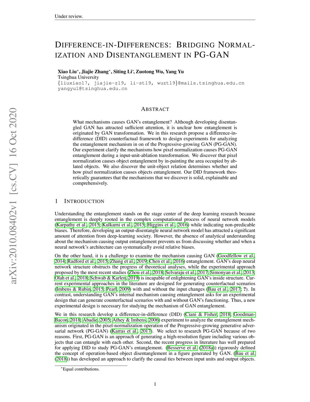 What mechanisms causes GAN's entanglement? Although developing disentangled GAN has attracted sufficient attention, it is unclear how entanglement is originated by GAN transformation. We in this research propose a difference-in-difference (DID) counterfactual framework to design experiments for analyzing the entanglement mechanism in on of the Progressive-growing GAN (PG-GAN). Our experiment clarify the mechanisms how pixel normalization causes PG-GAN entanglement during a input-unit-ablation transformation. We discover that pixel normalization causes object entanglement by in-painting the area occupied by ablated objects. We also discover the unit-object relation determines whether and how pixel normalization causes objects entanglement. Our DID framework theoretically guarantees that the mechanisms that we discover is solid, explainable and comprehensively.