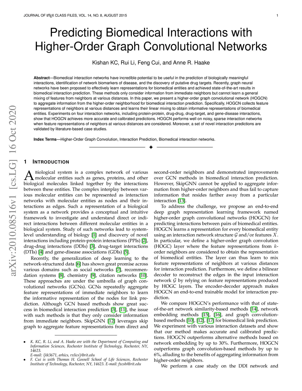 Predicting Biomedical Interactions with Higher-Order Graph Convolutional