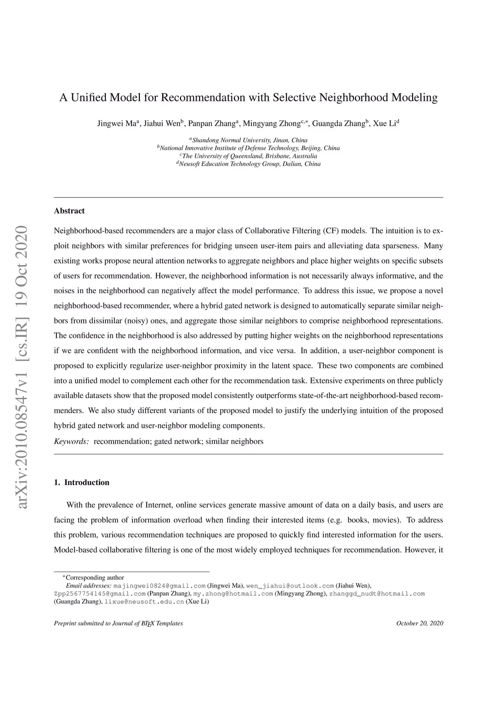 A Unified Model for Recommendation with Selective Neighborhood Modeling
