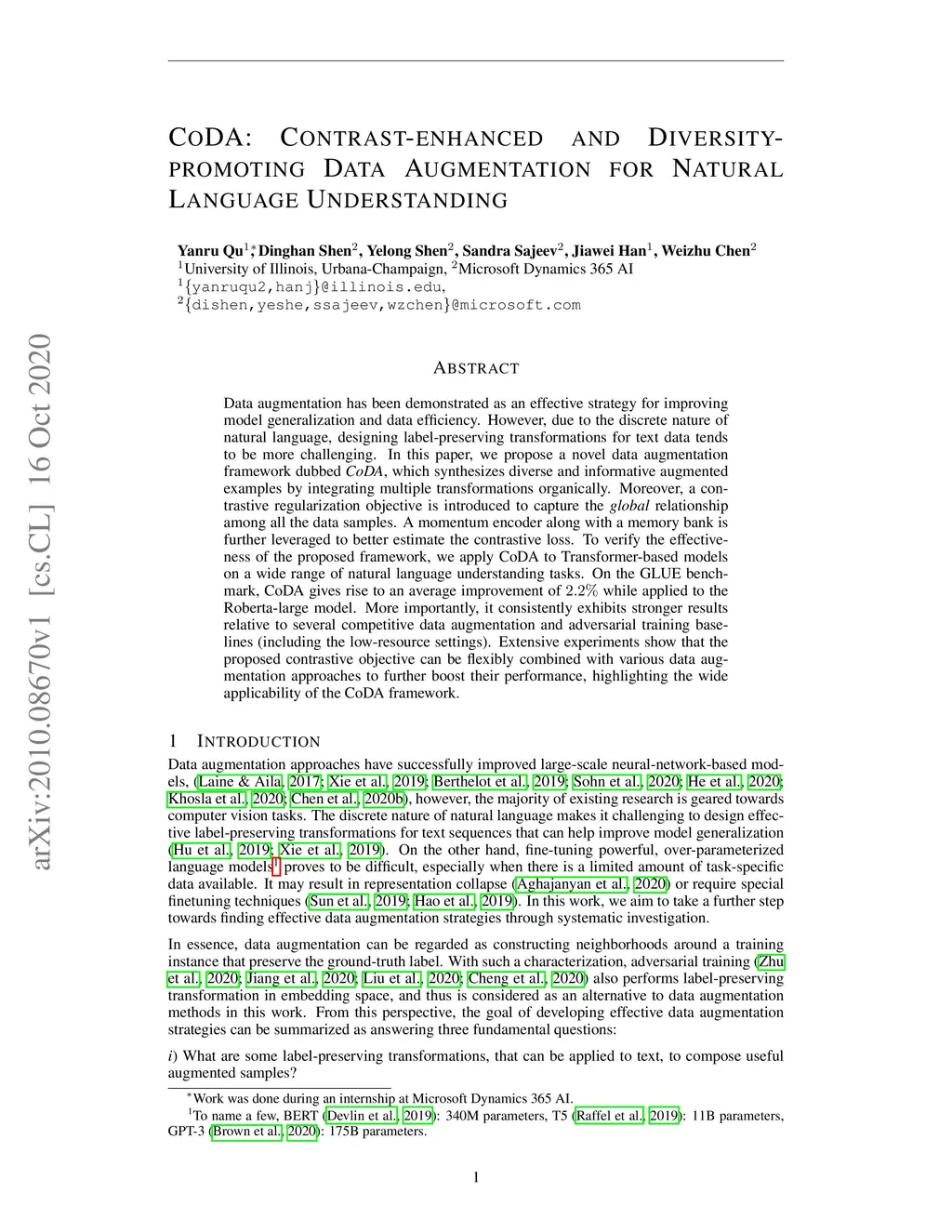 CoDA: Contrast-enhanced and Diversity-promoting Data Augmentation for