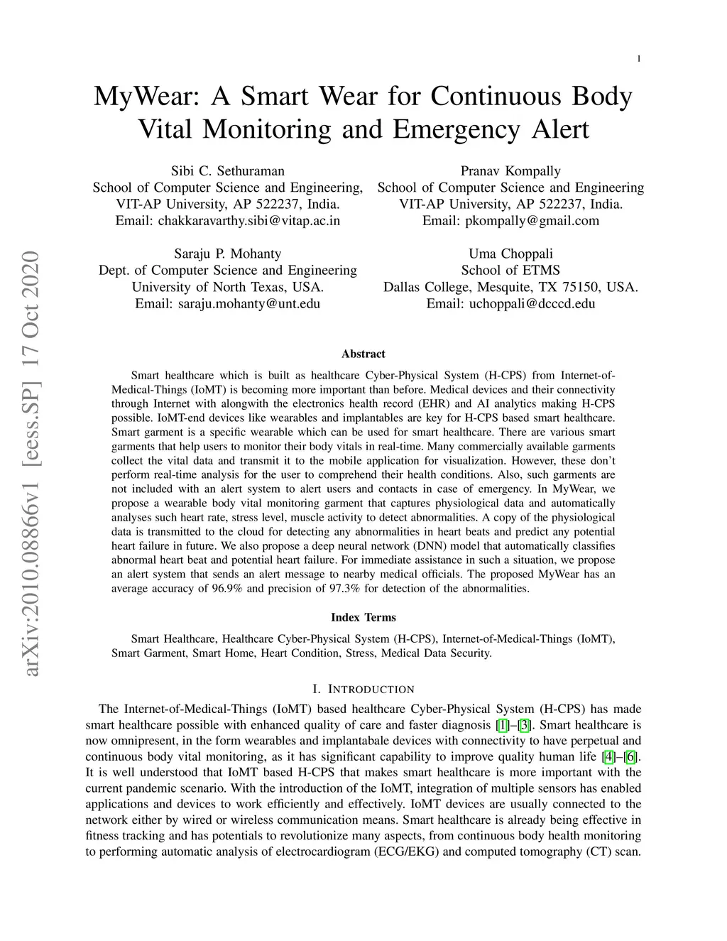 MyWear: A Smart Wear for Continuous Body Vital Monitoring and Emergency