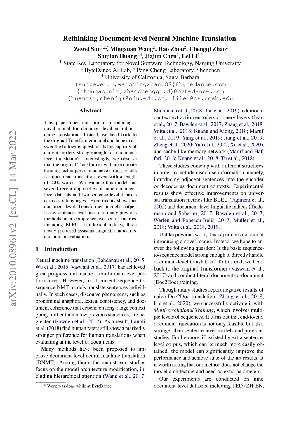 Rethinking Document-level Neural Machine Translation