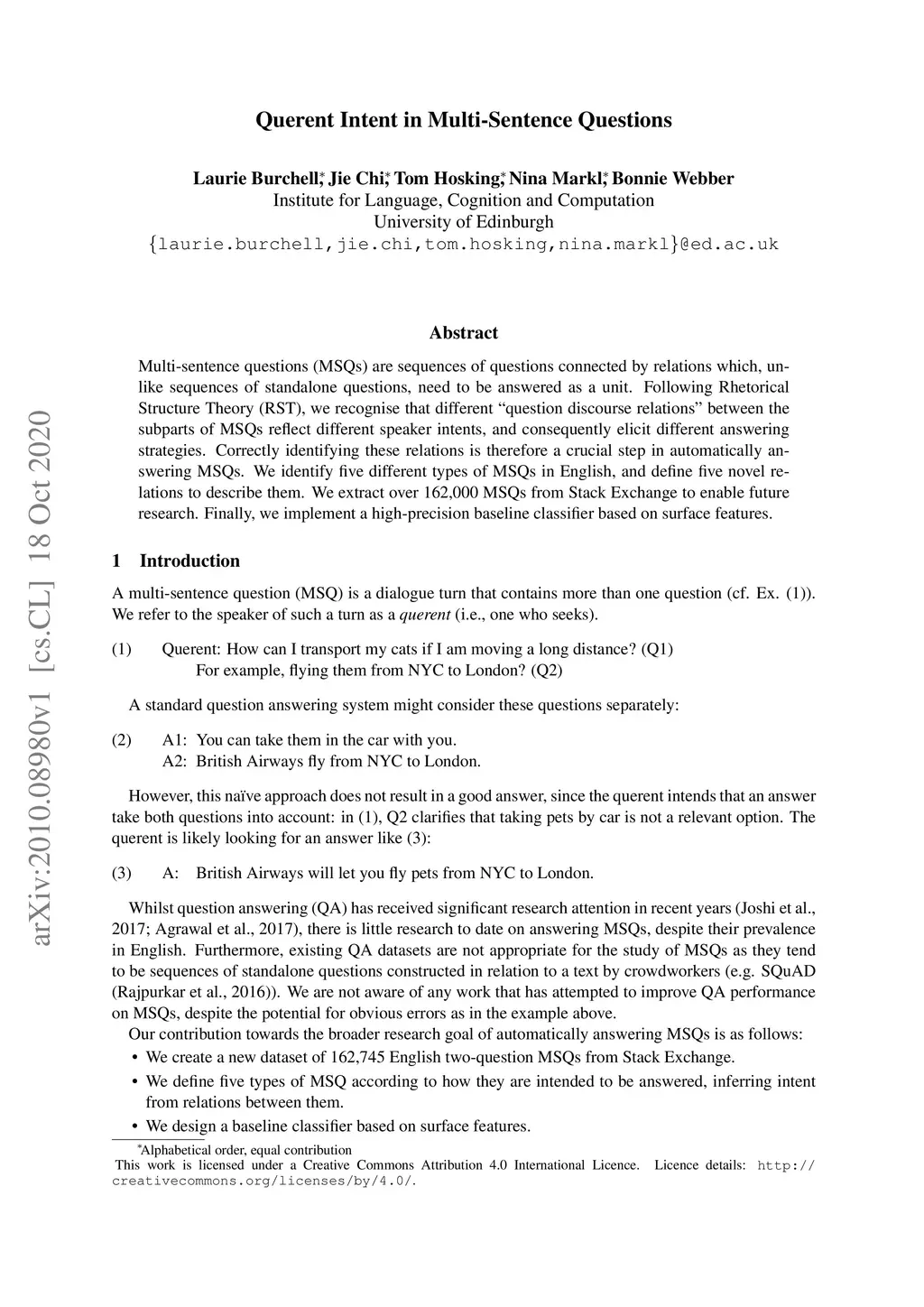 Querent Intent in Multi-Sentence Questions