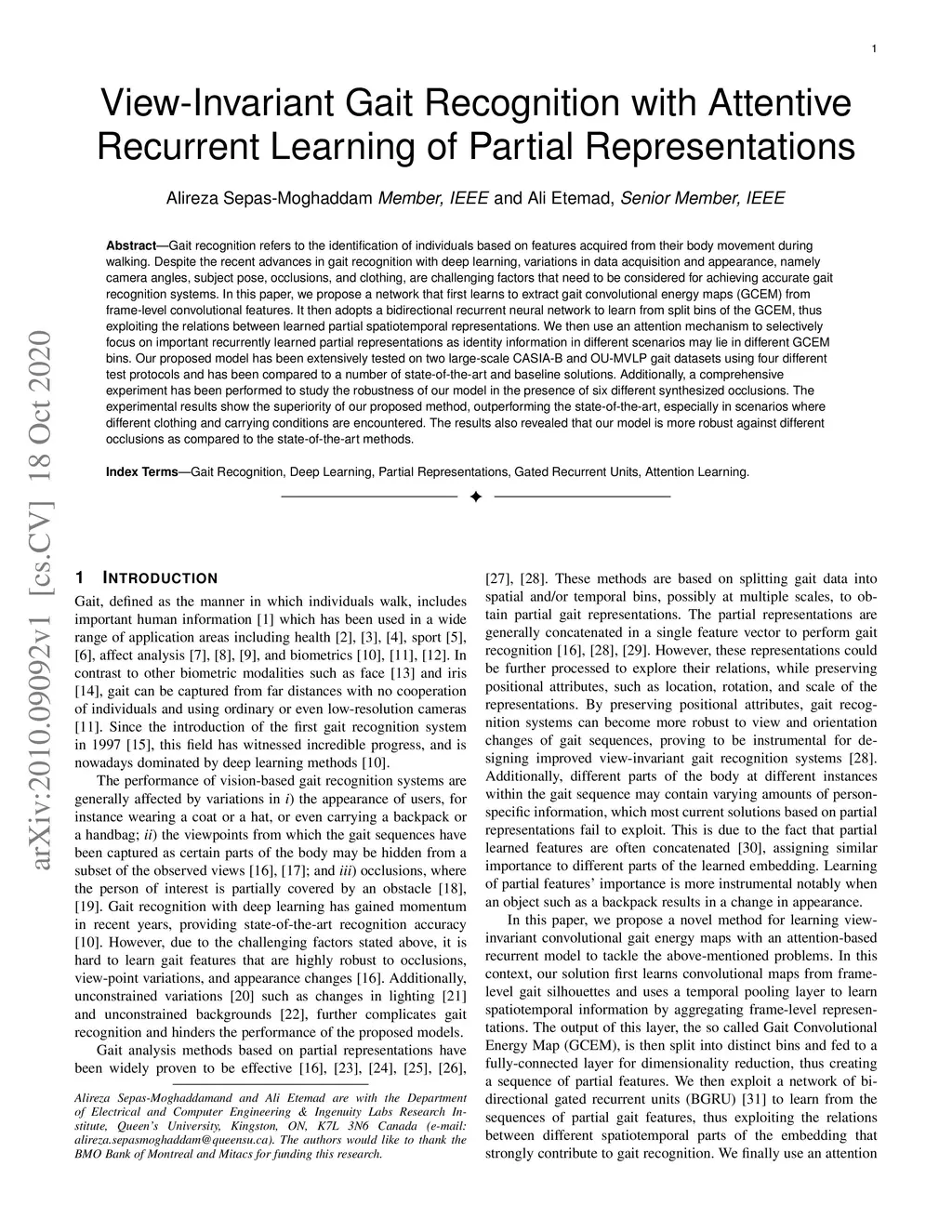 View-Invariant Gait Recognition with Attentive Recurrent Learning of