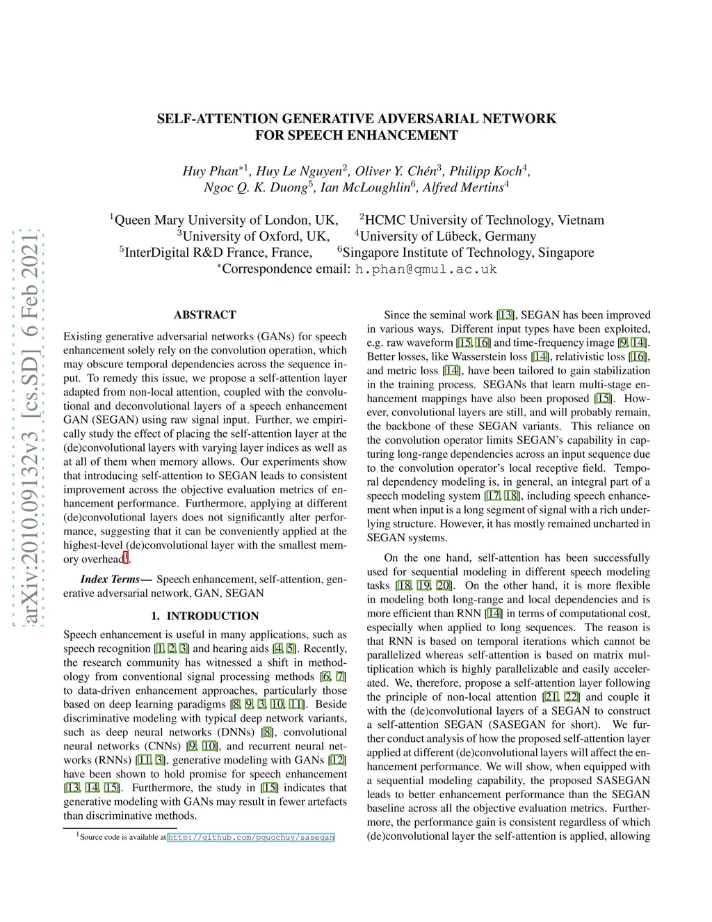 Self-Attention Generative Adversarial Network for Speech Enhancement
