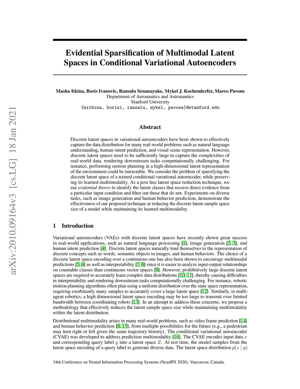 Evidential Sparsification of Multimodal Latent Spaces in Conditional