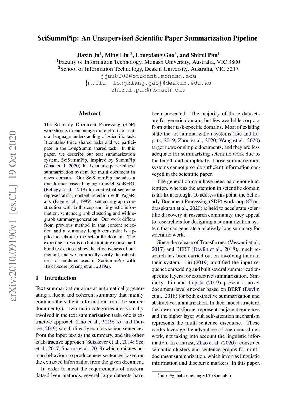 SciSummPip: An Unsupervised Scientific Paper Summarization Pipeline