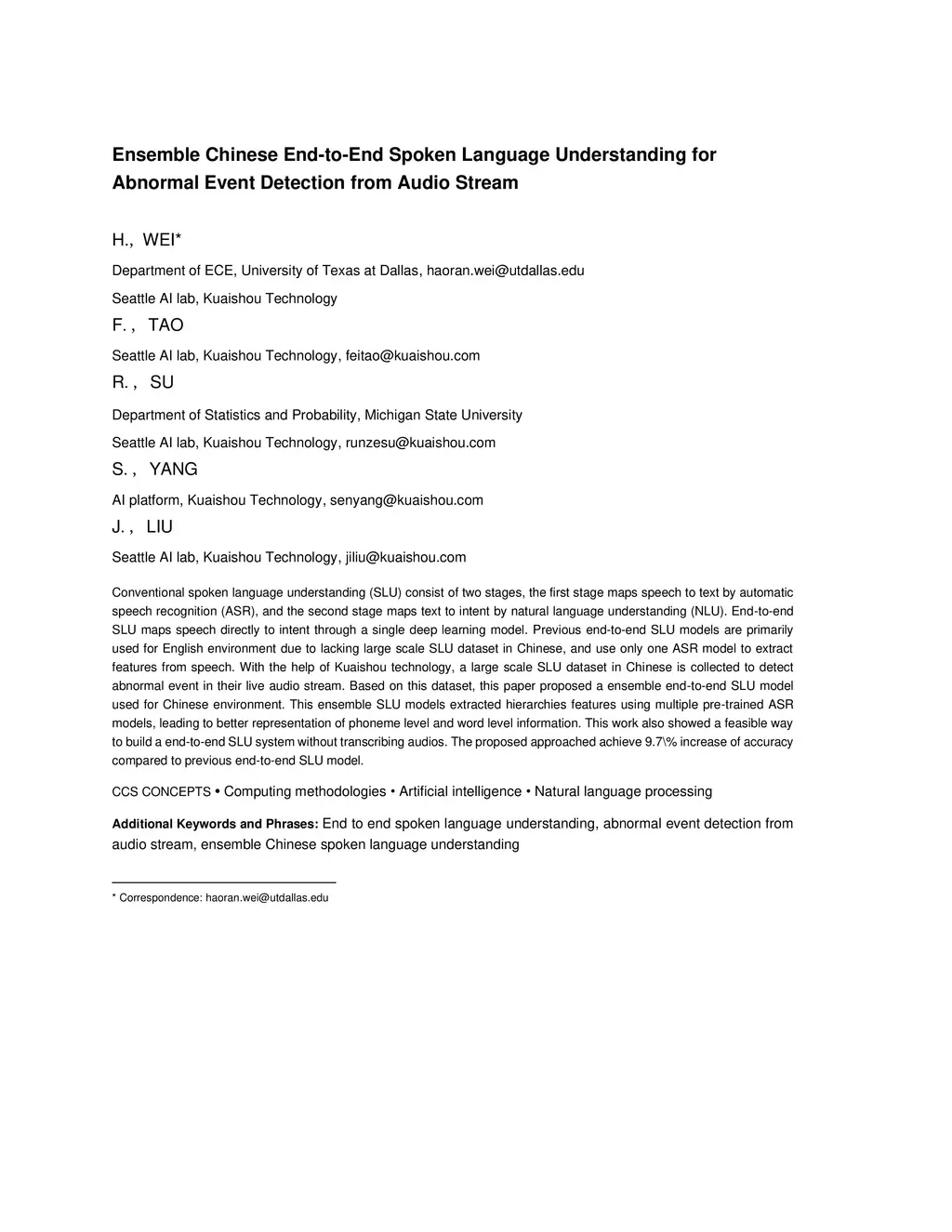 Ensemble Chinese End-to-End Spoken Language Understanding for Abnormal