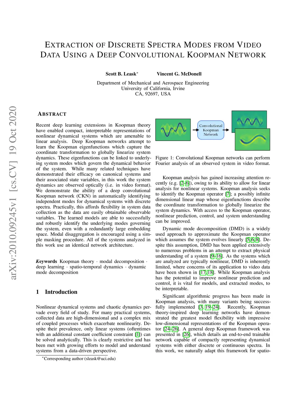 Extraction of Discrete Spectra Modes from Video Data Using a Deep