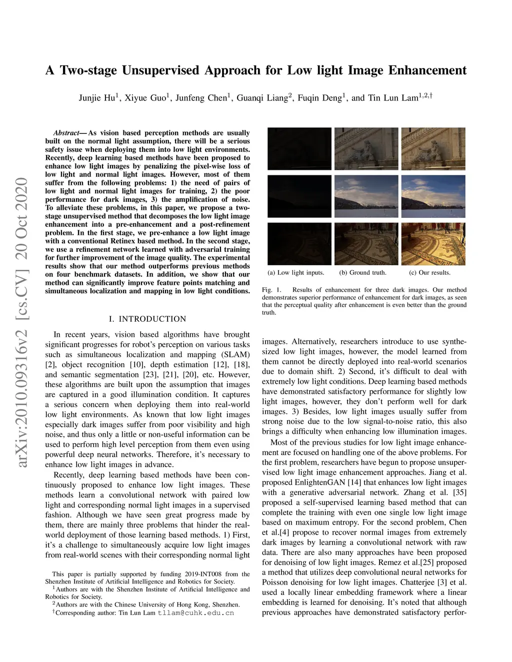A Two-stage Unsupervised Approach for Low light Image Enhancement
