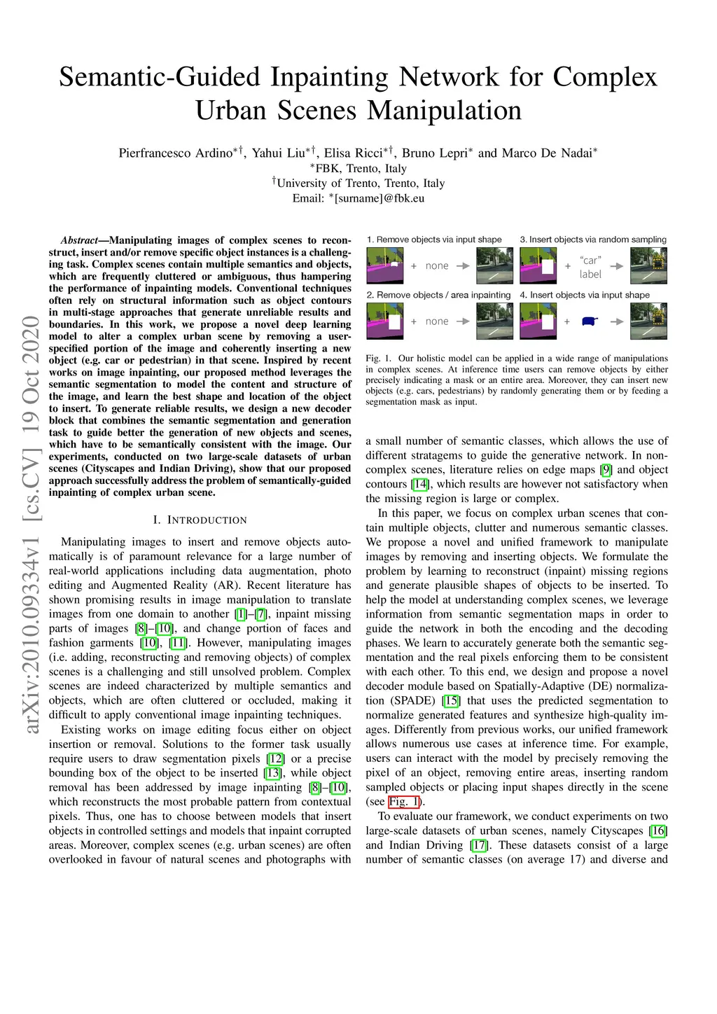 Semantic-Guided Inpainting Network for Complex Urban Scenes Manipulation