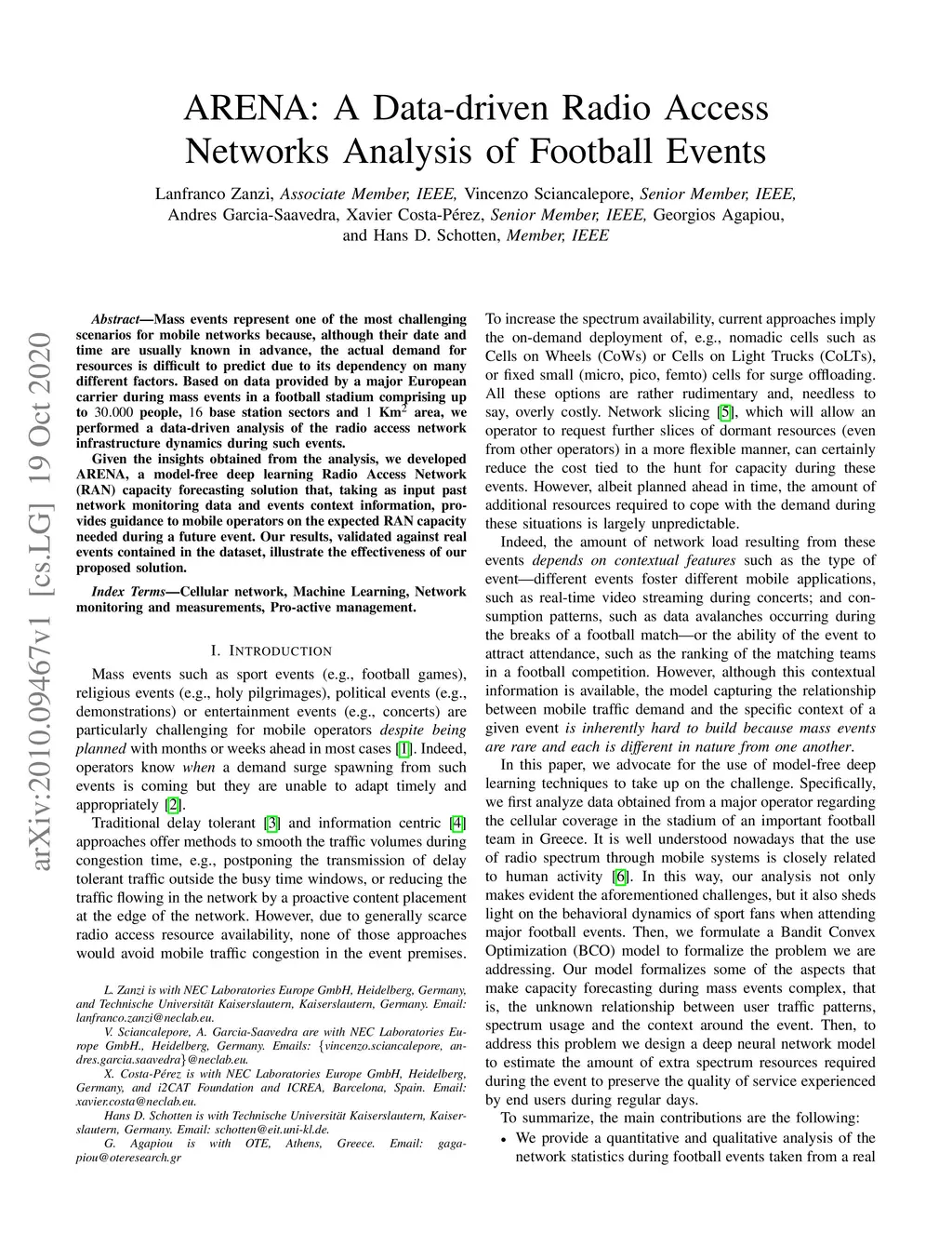 ARENA: A Data-driven Radio Access Networks Analysis of Football Events