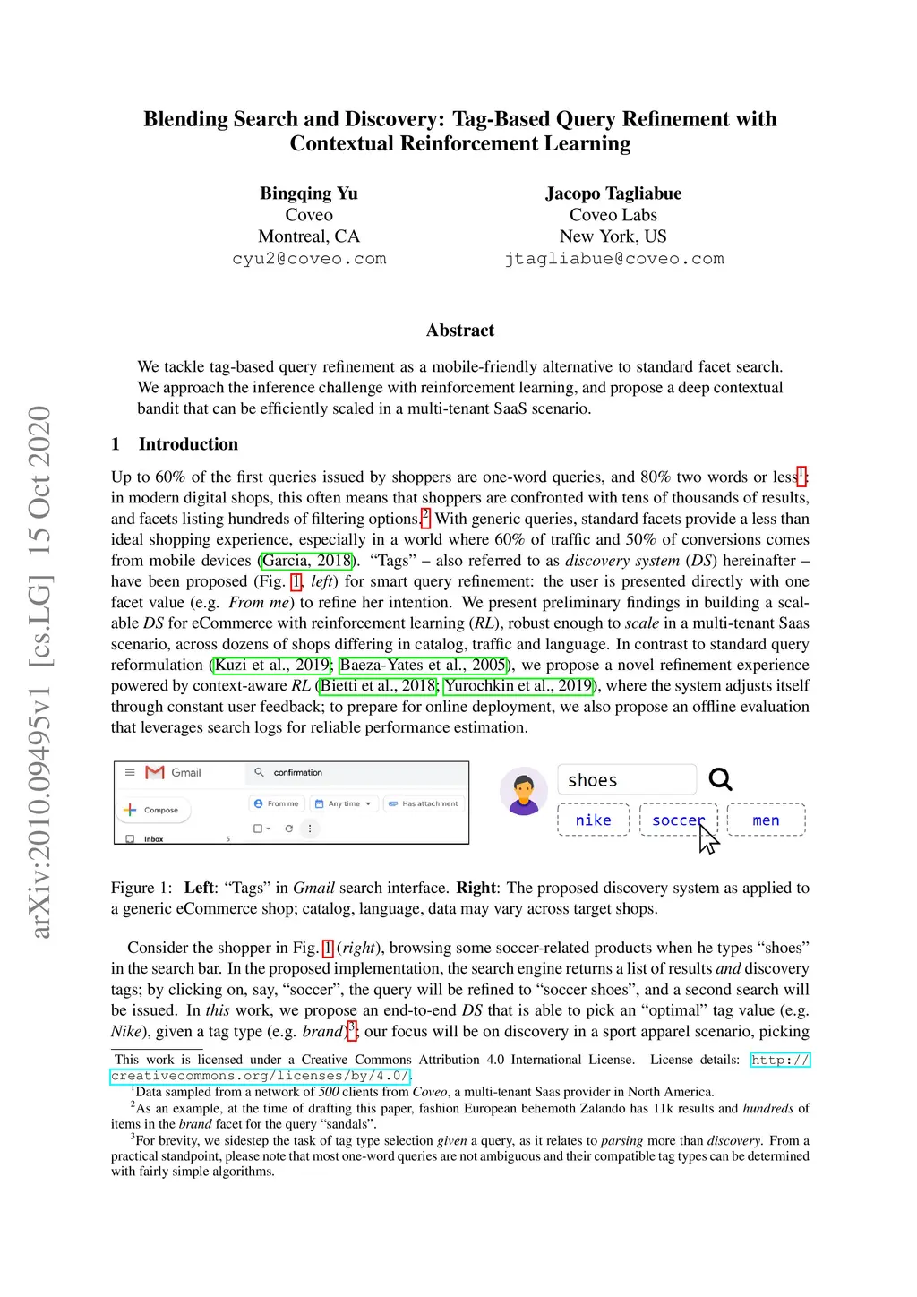 We tackle tag-based query refinement as a mobile-friendly alternative to standard facet search. We approach the inference challenge with reinforcement learning, and propose a deep contextual bandit that can be efficiently scaled in a multi-tenant SaaS scenario.