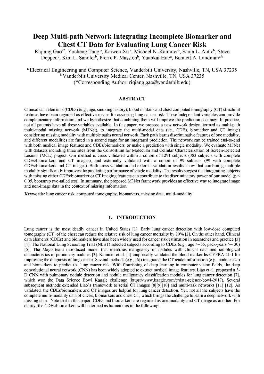 Deep Multi-path Network Integrating Incomplete Biomarker and Chest CT