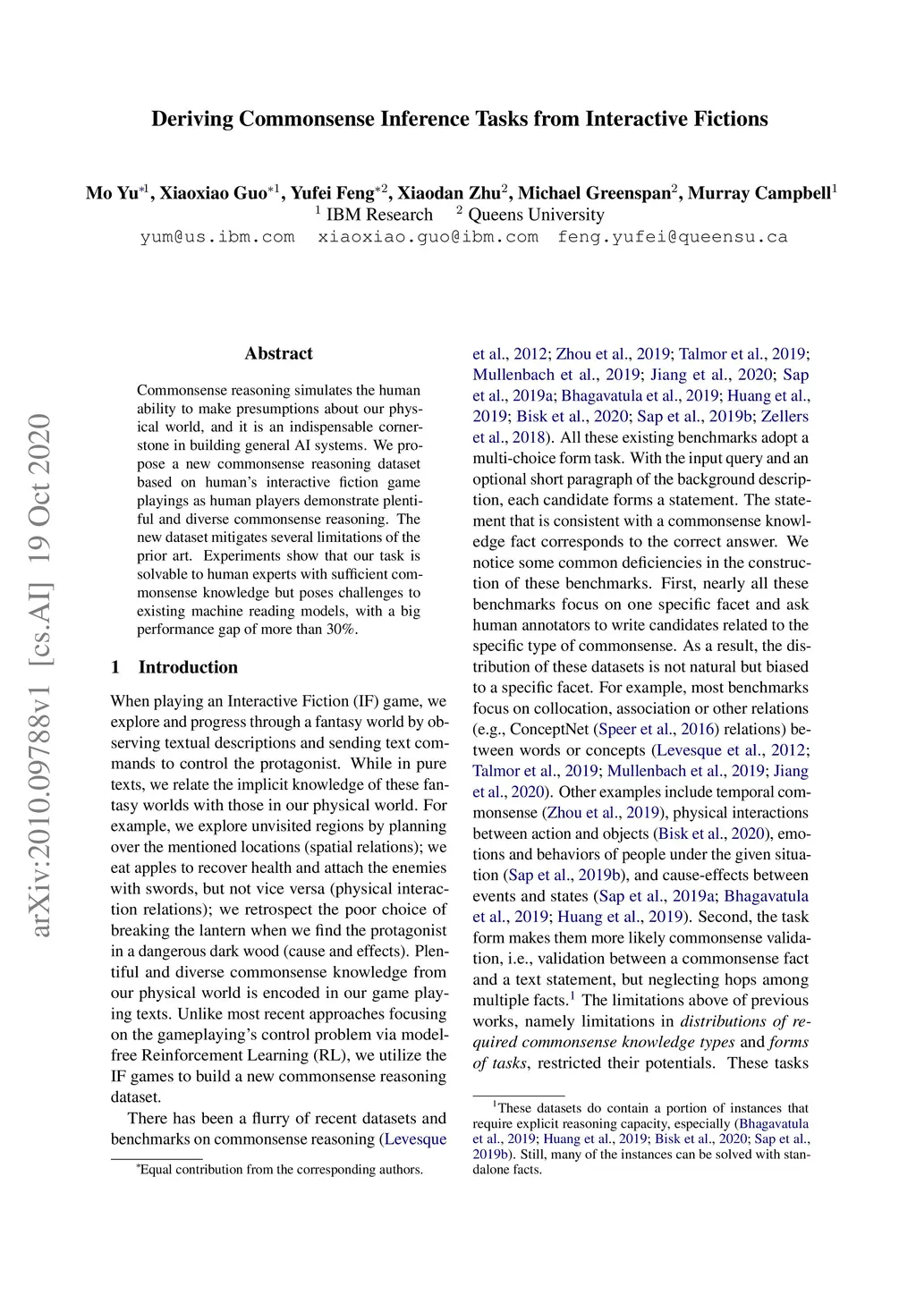Deriving Commonsense Inference Tasks from Interactive Fictions
