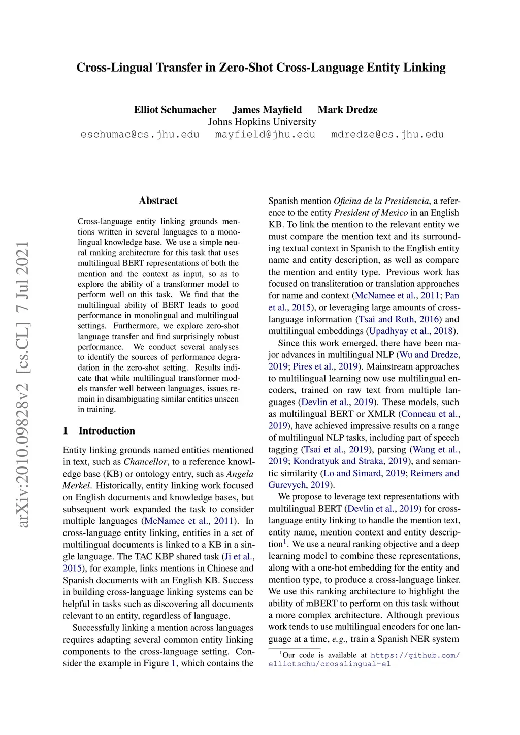 Cross-Lingual Transfer in Zero-Shot Cross-Language Entity Linking