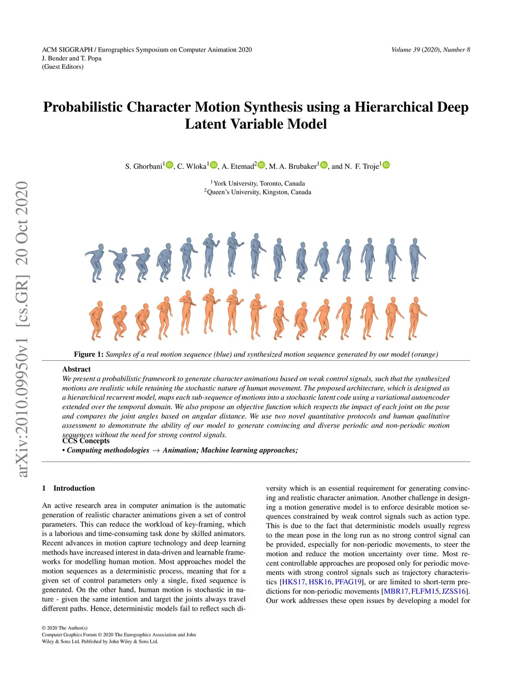 Probabilistic Character Motion Synthesis using a Hierarchical Deep