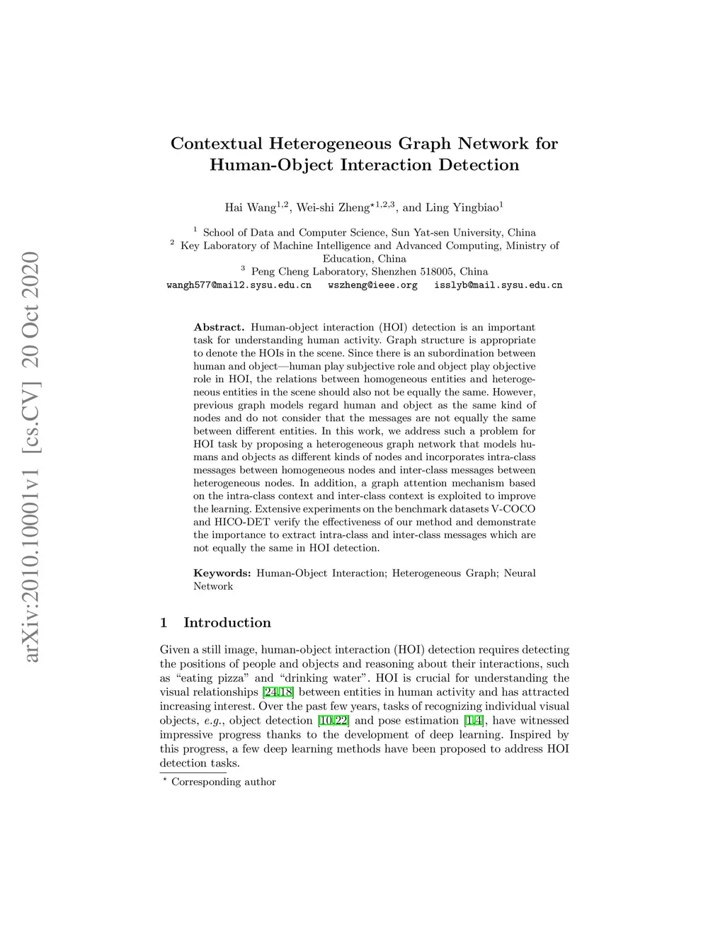 Contextual Heterogeneous Graph Network for Human-Object Interaction
