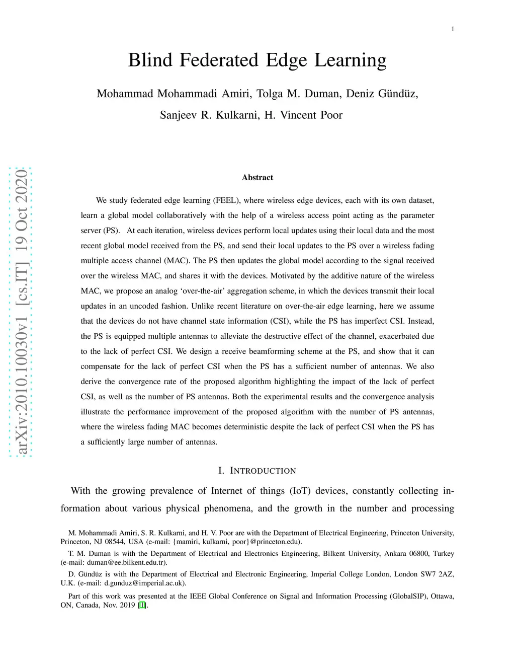 We study federated edge learning (FEEL), where wireless edge devices, each with its own dataset, learn a global model collaboratively with the help of a wireless access point acting as the parameter server (PS). At each iteration, wireless devices perform local updates using their local data and the most recent global model received from the PS, and send their local updates to the PS over a wireless fading multiple access channel (MAC). The PS then updates the global model according to the signal received over the wireless MAC, and shares it with the devices. Motivated by the additive nature of the wireless MAC, we propose an analog `over-the-air' aggregation scheme, in which the devices transmit their local updates in an uncoded fashion. Unlike recent literature on over-the-air edge learning, here we assume that the devices do not have channel state information (CSI), while the PS has imperfect CSI. Instead, the PS is equipped multiple antennas to alleviate the destructive effect of the channel, exacerbated due to the lack of perfect CSI. We design a receive beamforming scheme at the PS, and show that it can compensate for the lack of perfect CSI when the PS has a sufficient number of antennas. We also derive the convergence rate of the proposed algorithm highlighting the impact of the lack of perfect CSI, as well as the number of PS antennas. Both the experimental results and the convergence analysis illustrate the performance improvement of the proposed algorithm with the number of PS antennas, where the wireless fading MAC becomes deterministic despite the lack of perfect CSI when the PS has a sufficiently large number of antennas.