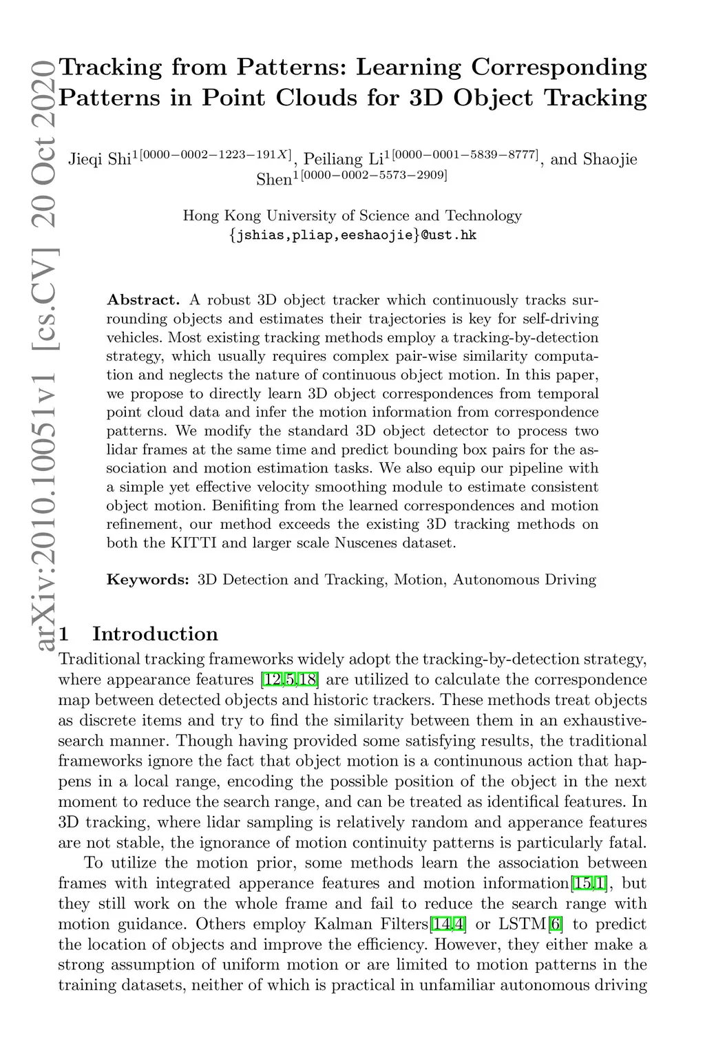 Tracking from Patterns: Learning Corresponding Patterns in Point Clouds