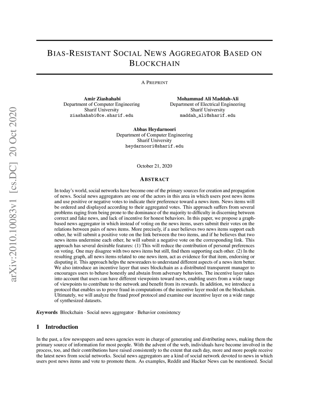 Bias-Resistant Social News Aggregator Based on Blockchain