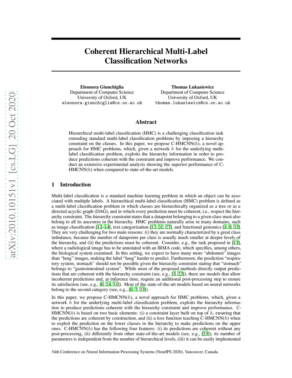 Coherent Hierarchical Multi-Label Classification Networks