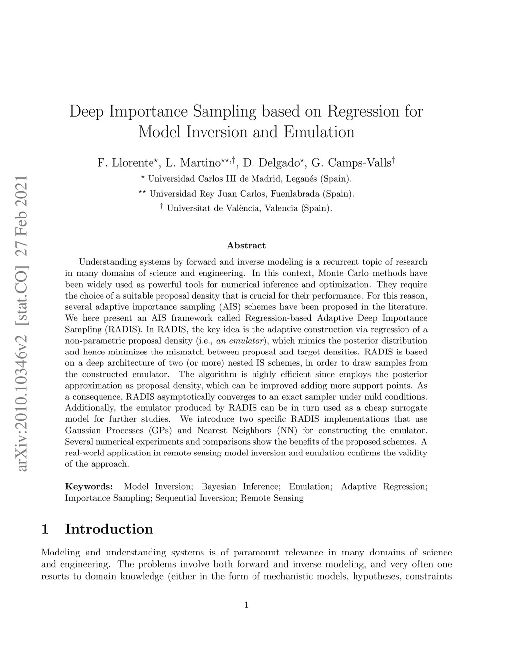 Understanding systems by forward and inverse modeling is a recurrent topic of research in many domains of science and engineering. In this context, Monte Carlo methods have been widely used as powerful tools for numerical inference and optimization. They require the choice of a suitable proposal density that is crucial for their performance. For this reason, several adaptive importance sampling (AIS) schemes have been proposed in the literature. We here present an AIS framework called Regression-based Adaptive Deep Importance Sampling (RADIS). In RADIS, the key idea is the adaptive construction via regression of a non-parametric proposal density (i.e., an emulator), which mimics the posterior distribution and hence minimizes the mismatch between proposal and target densities. RADIS is based on a deep architecture of two (or more) nested IS schemes, in order to draw samples from the constructed emulator. The algorithm is highly efficient since employs the posterior approximation as proposal density, which can be improved adding more support points. As a consequence, RADIS asymptotically converges to an exact sampler under mild conditions. Additionally, the emulator produced by RADIS can be in turn used as a cheap surrogate model for further studies. We introduce two specific RADIS implementations that use Gaussian Processes (GPs) and Nearest Neighbors (NN) for constructing the emulator. Several numerical experiments and comparisons show the benefits of the proposed schemes. A real-world application in remote sensing model inversion and emulation confirms the validity of the approach.