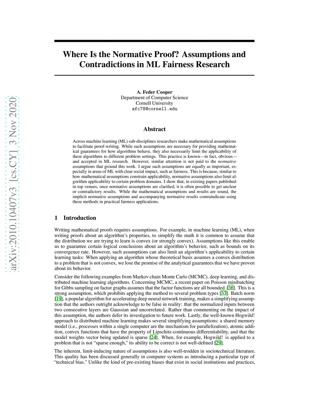 Where Is the Normative Proof? Assumptions and Contradictions in ML