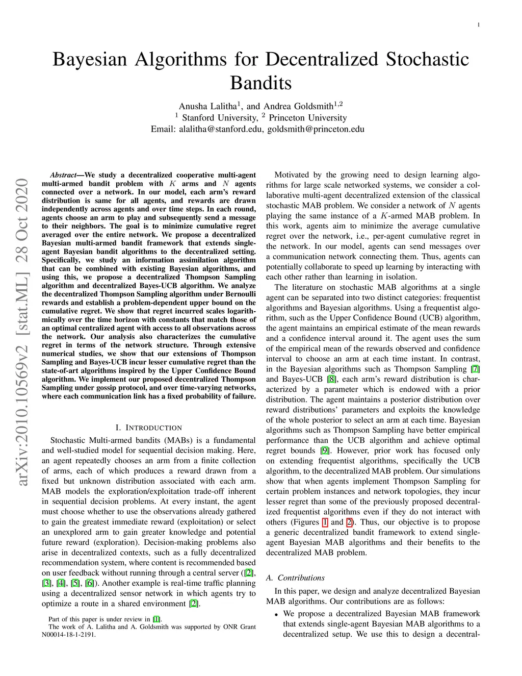 Bayesian Algorithms for Decentralized Stochastic Bandits