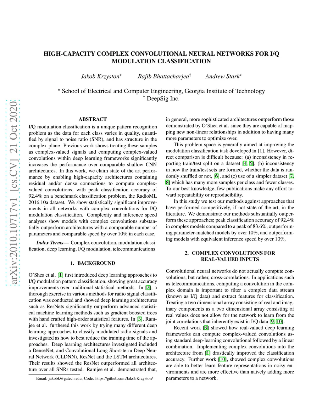High-Capacity Complex Convolutional Neural Networks For I/Q Modulation