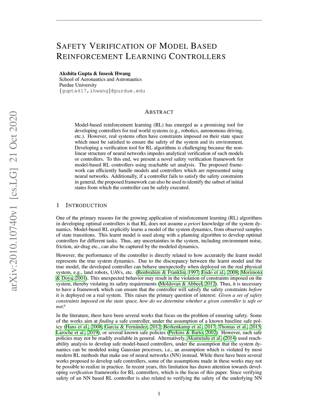 Safety Verification of Model Based Reinforcement Learning Controllers