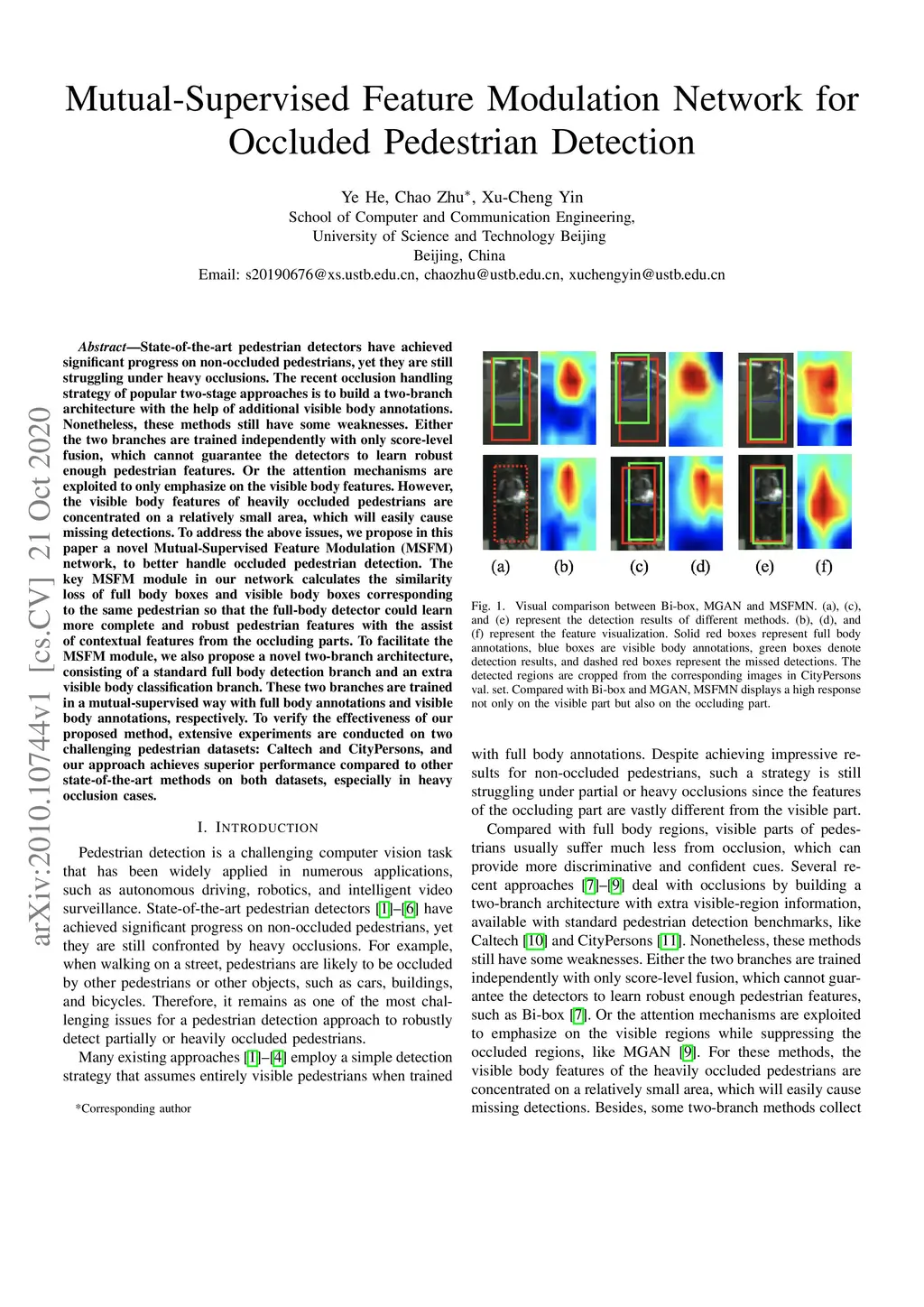 Mutual-Supervised Feature Modulation Network for Occluded Pedestrian