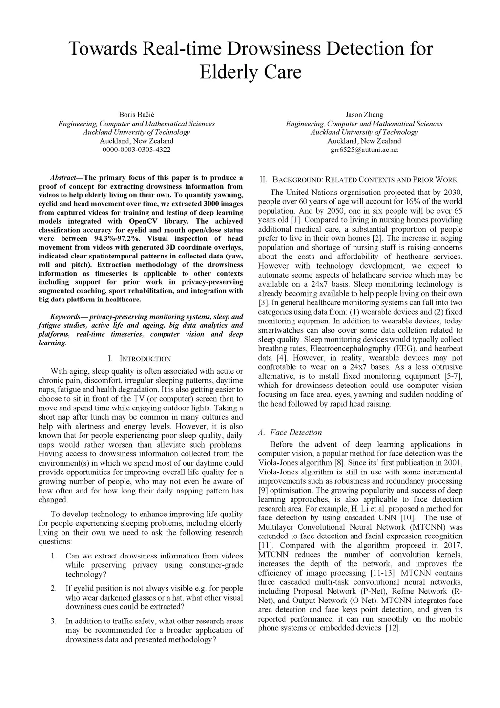 Towards Real-time Drowsiness Detection for Elderly Care
