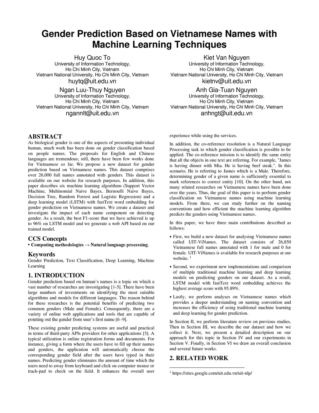 Gender Prediction Based on Vietnamese Names with Machine Learning