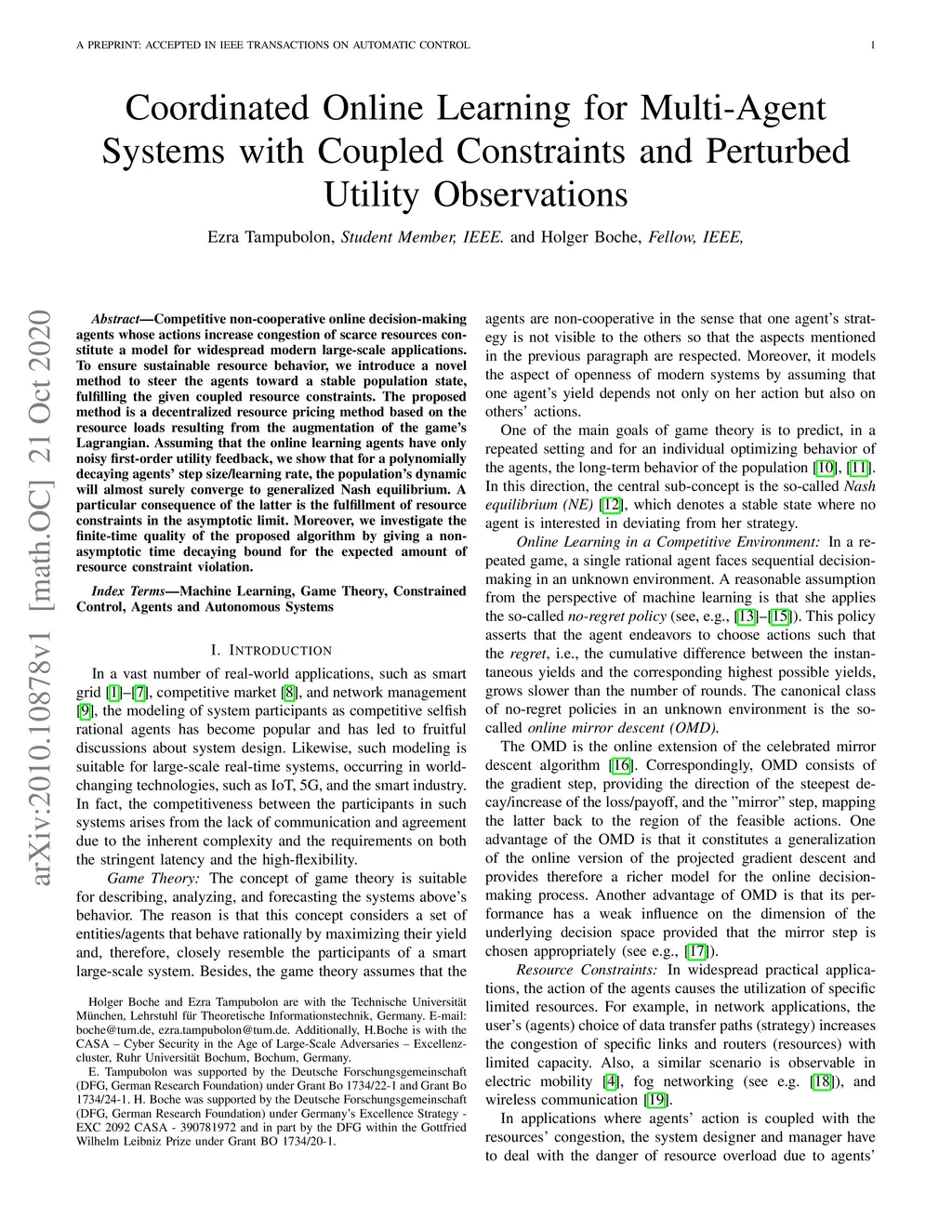 Coordinated Online Learning for Multi-Agent Systems with Coupled