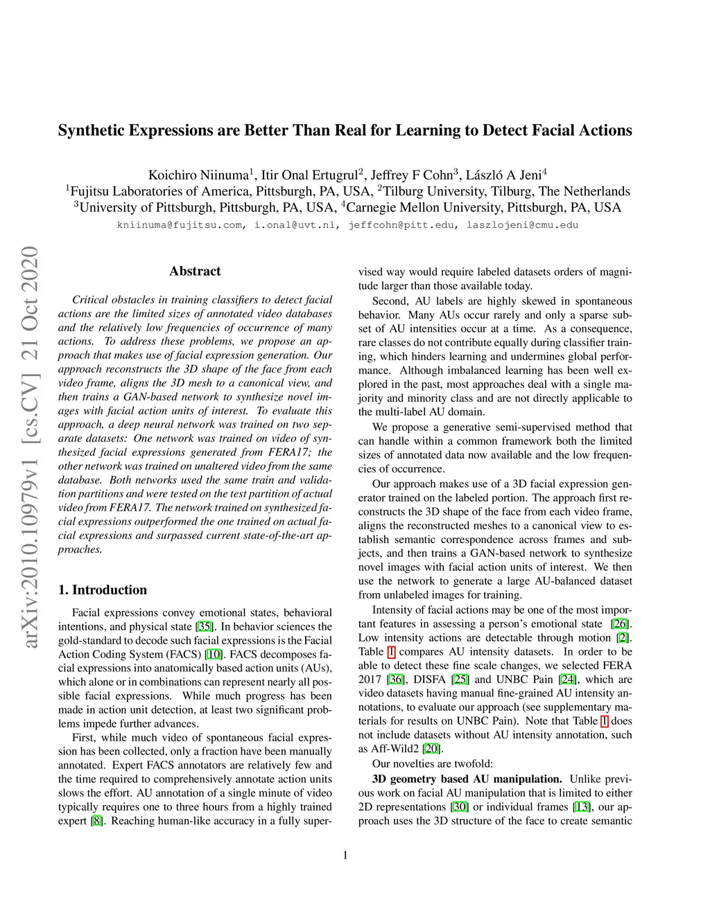 Synthetic Expressions are Better Than Real for Learning to Detect Facial