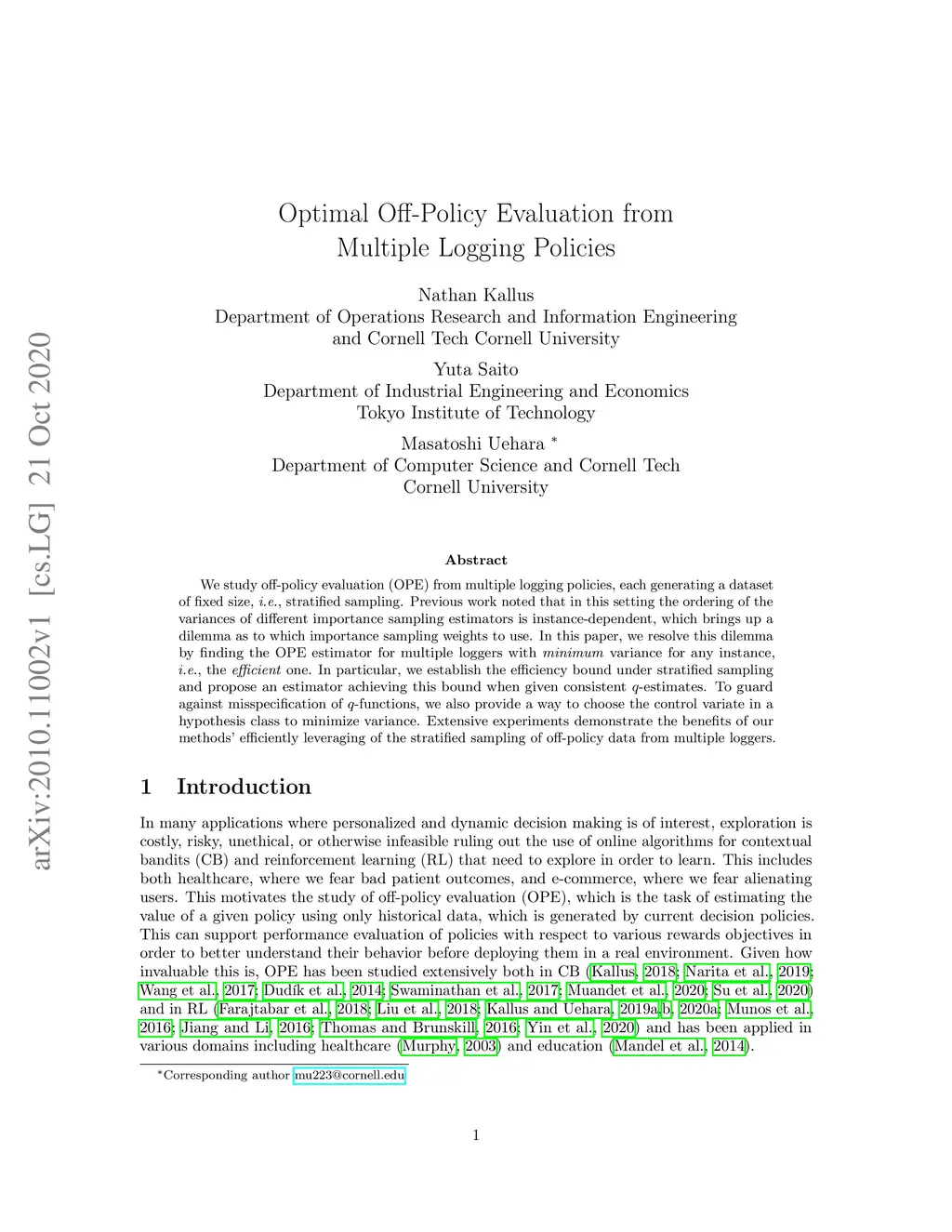 Optimal Off-Policy Evaluation from Multiple Logging Policies