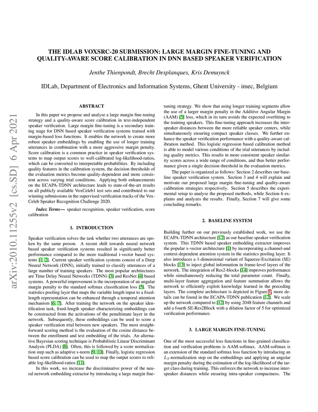 The IDLAB VoxSRC-20 Submission: Large Margin Fine-Tuning and Quality-Aware Score Calibration in DNN Based Speaker Verification