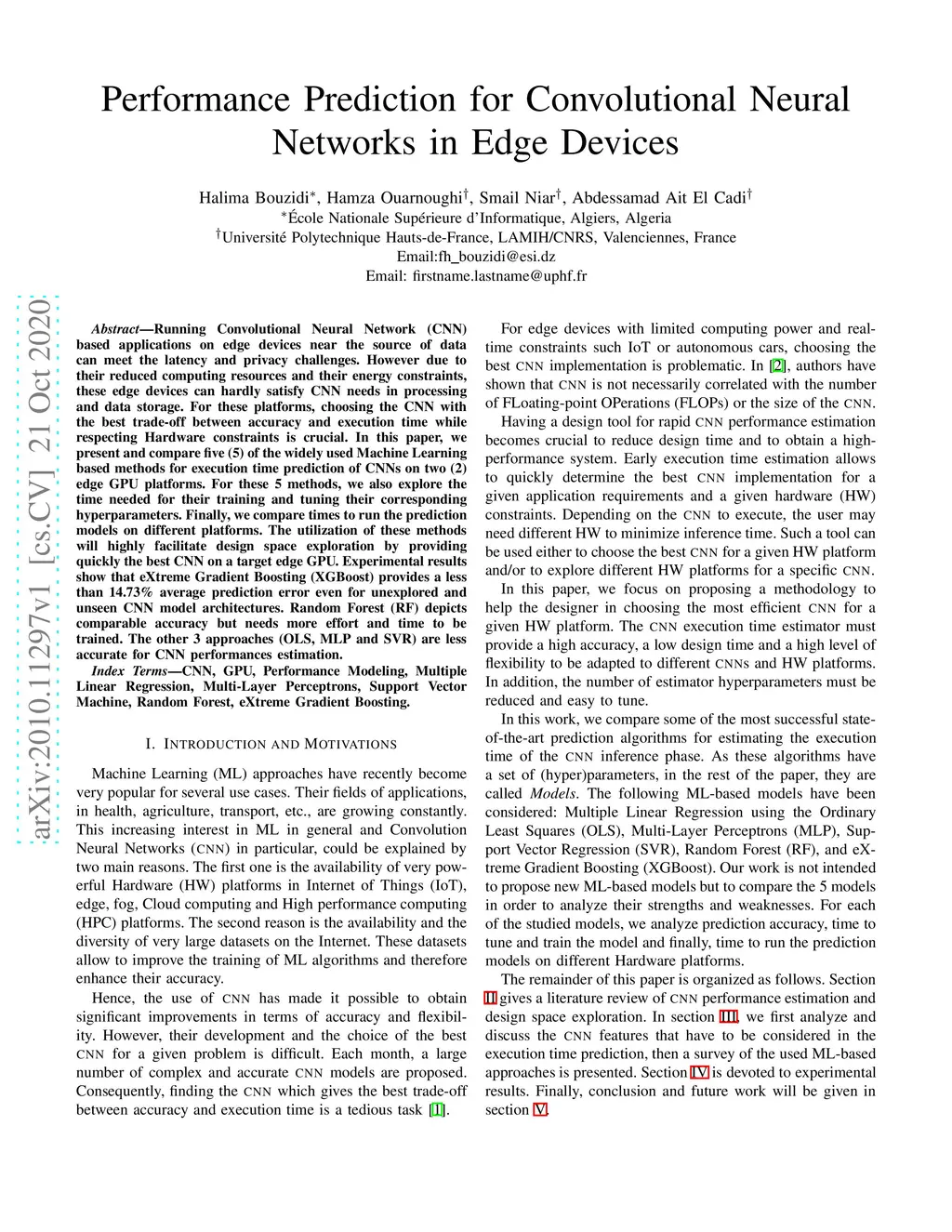 Performance Prediction for Convolutional Neural Networks in Edge Devices