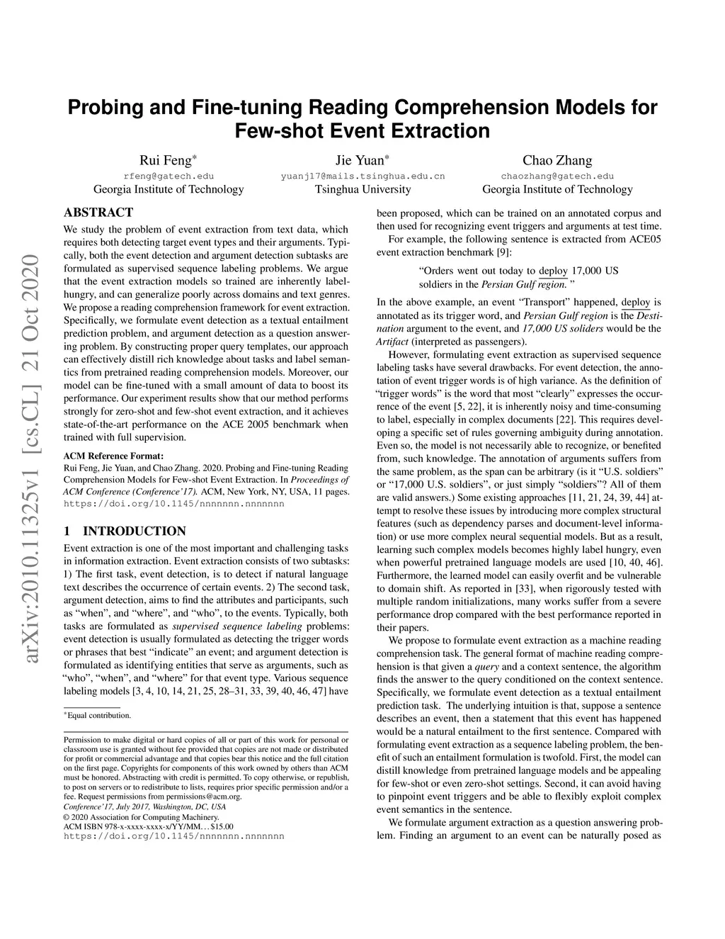 Probing and Fine-tuning Reading Comprehension Models for Few-shot Event