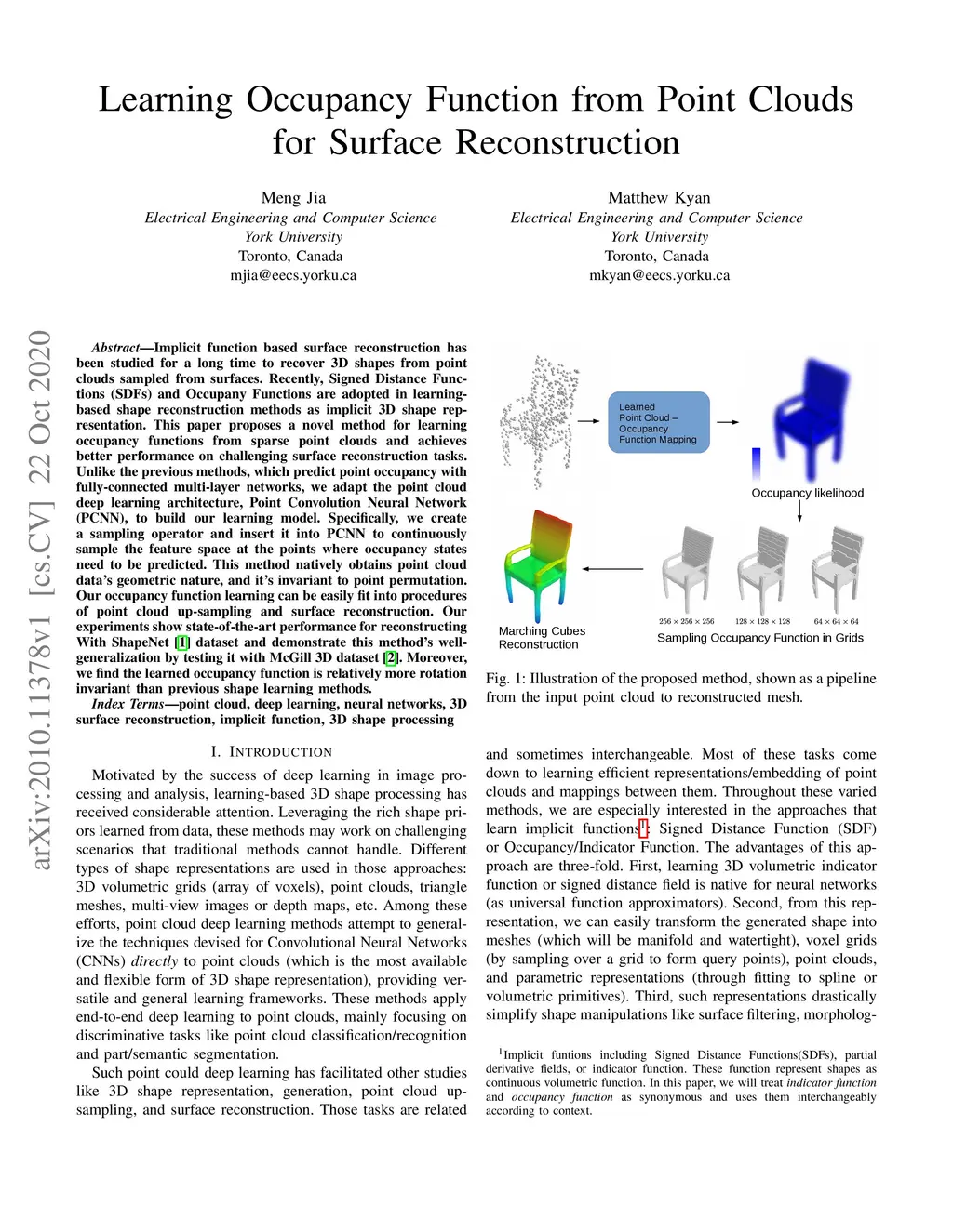 Learning Occupancy Function from Point Clouds for Surface Reconstruction