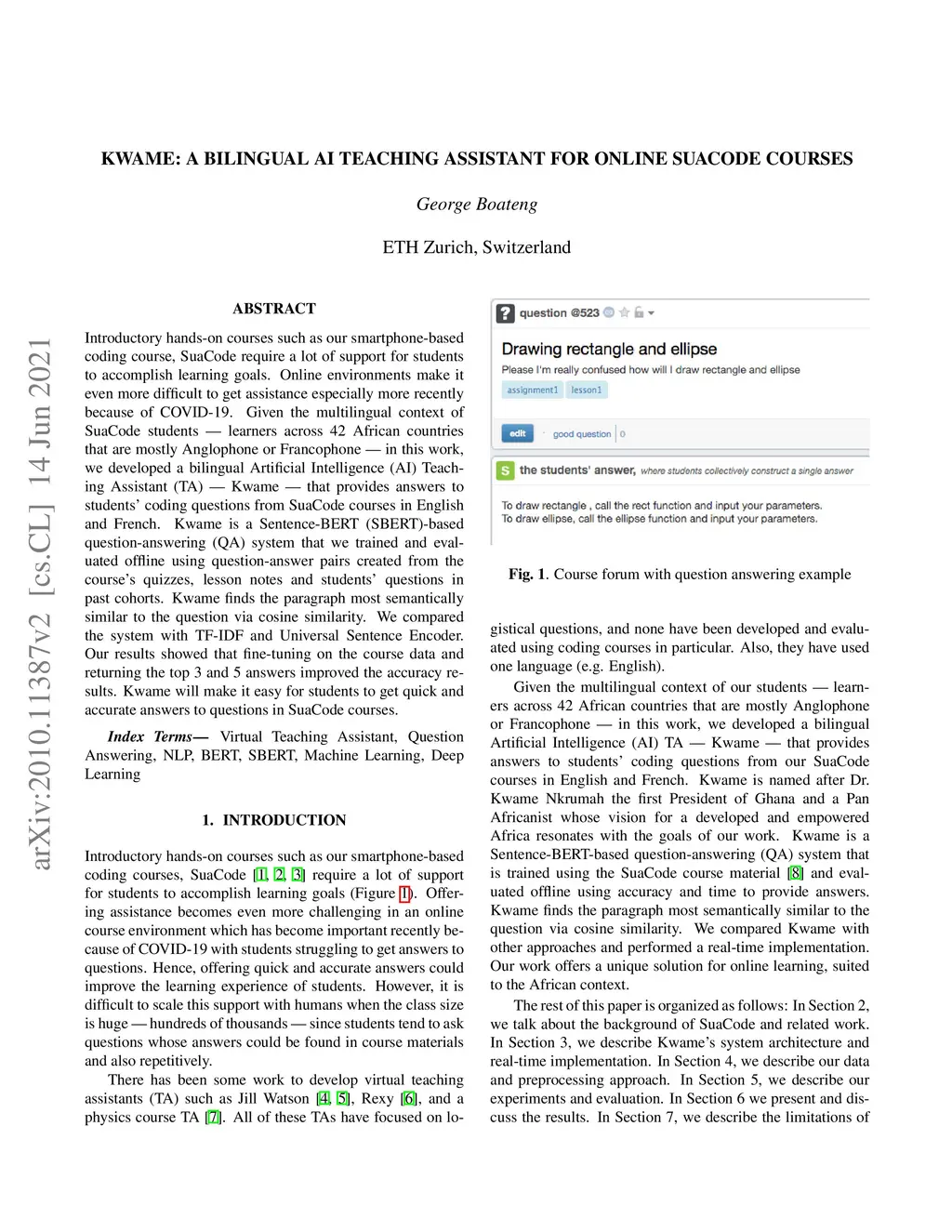 Kwame: A Bilingual AI Teaching Assistant for Online SuaCode Courses