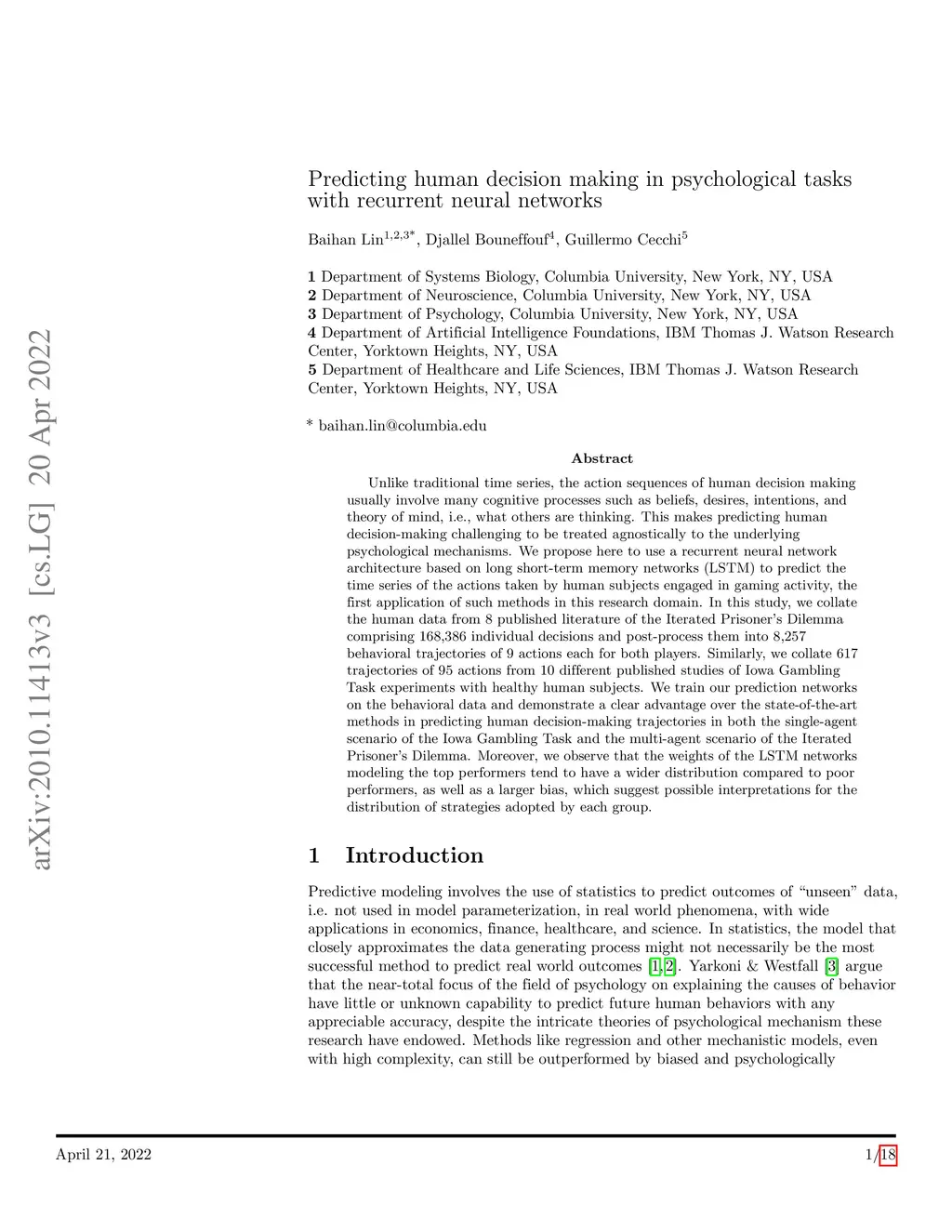 Predicting human decision making in psychological tasks with recurrent