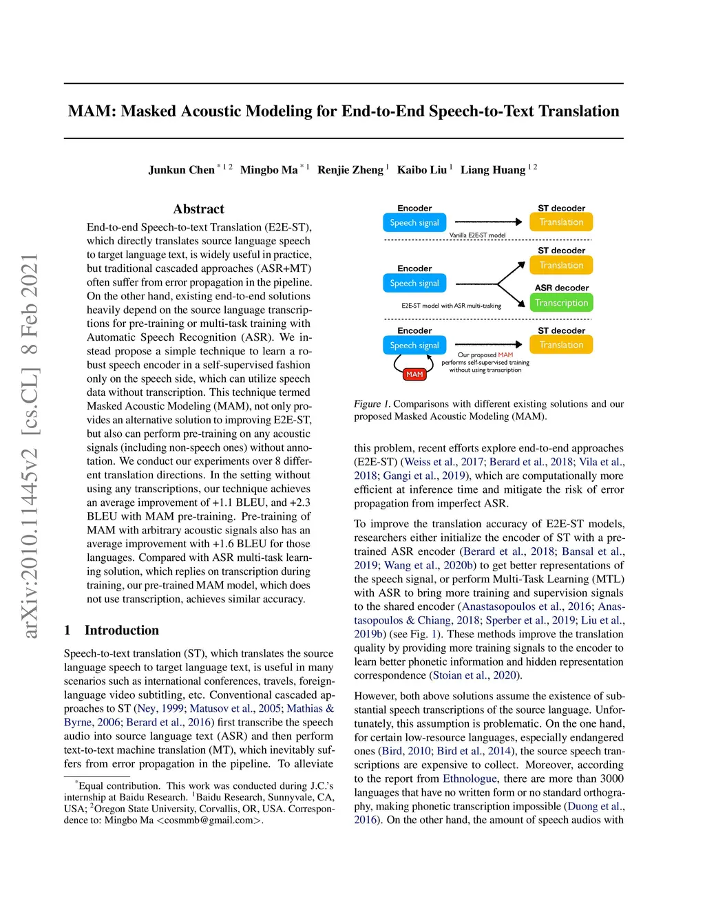 MAM: Masked Acoustic Modeling for End-to-End Speech-to-Text Translation