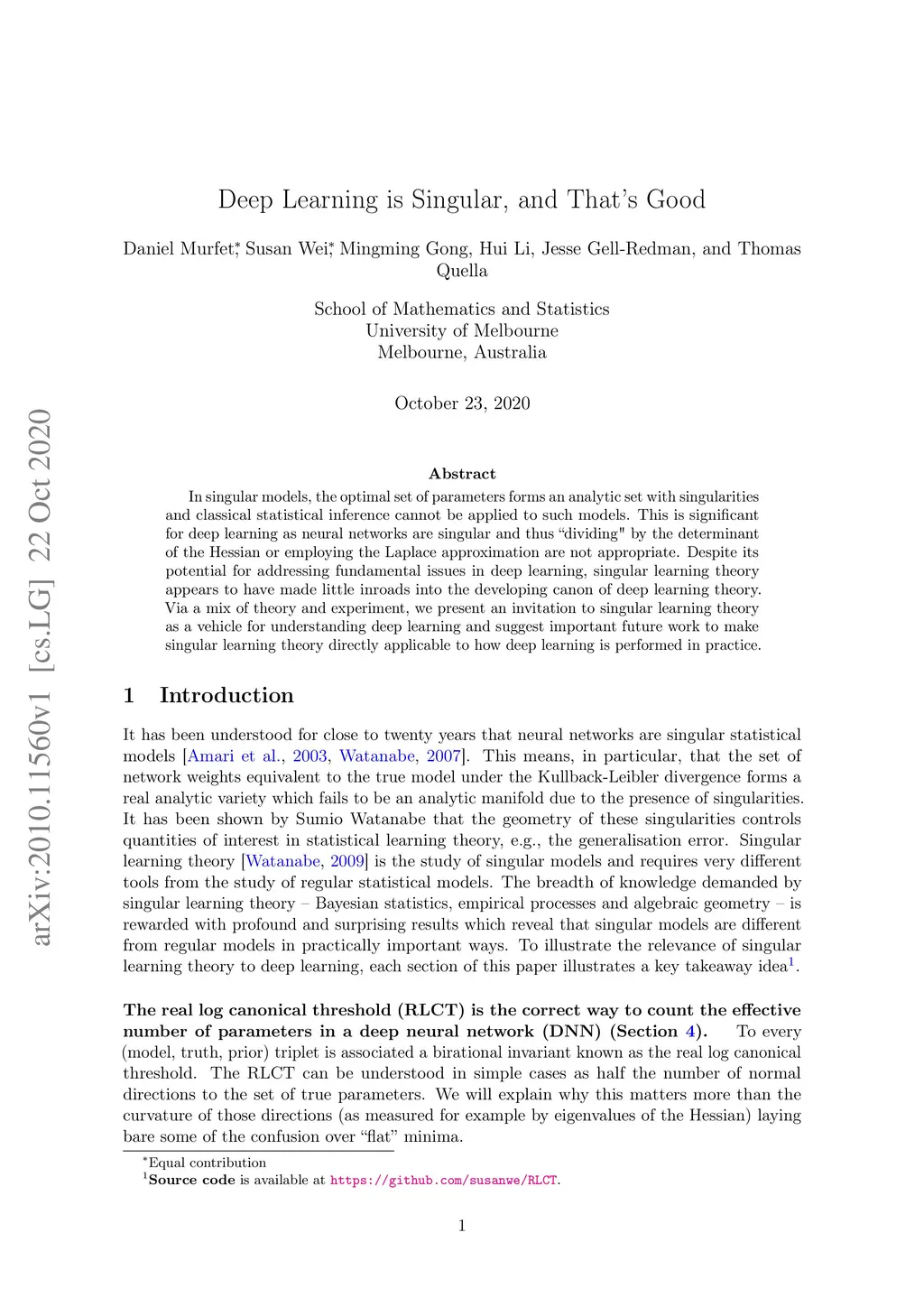 Deep Learning is Singular, and That's Good