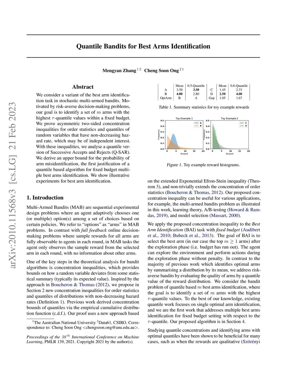 Quantile Bandits for Best Arms Identification